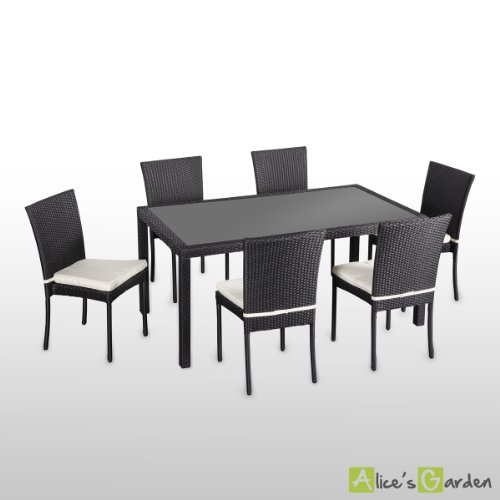 Ⓤ Alice's Garden - Salon de jardin 6 places - Bergamo - Coloris Noir, coussins écrus, Table extérieure avec 6 chaises