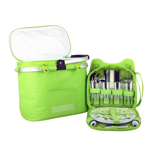 Ⓘ Confidence Panier à Pique Nique Vert Vif et a Pois