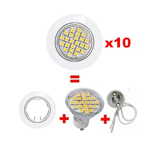 Ⓘ LUMILEDECO - 10 SPOT ENCASTRABLE ORIENTABLE COMPLET LED GU10 24 LED 5W BLANC CHAUD SMD 5050. VENDU AVEC AMPOULE + DOUILLE. ECLAIRE COMME 50W HALOGENE OU INCANDESCENT. NORME CE ET ROHS. LIVRAISON EN SUIVI